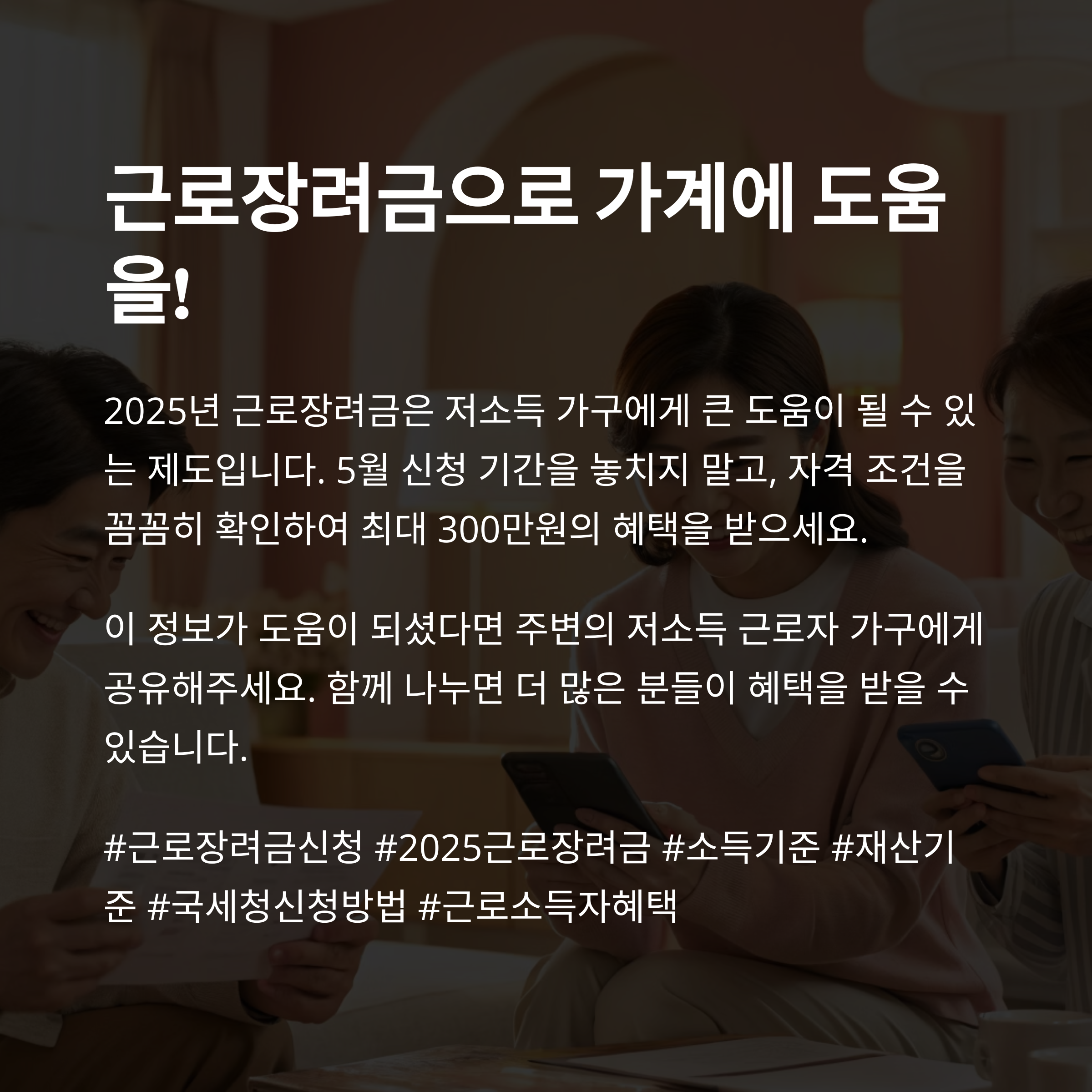 2025년 근로장려금 신청은 저소득 가구의 실질적인 생활 지원을 위해 진행됩니다.